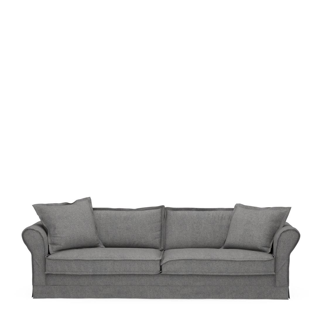 Ein 3,5-Sitzer ist meist groß genug für vier Personen. Und fünf Kinder passen ebenfalls auf solch ein Sofa. So können Sie gemütlich zusammen einen Familienfilm gucken. Das Sofa ist 255 cm lang und der Bezug ist aus Polyester: Der dekorative, Oxford Weave genannte Stoff ist ein recht grobes Gewebe. In verschiedenen Farben erhältlich.