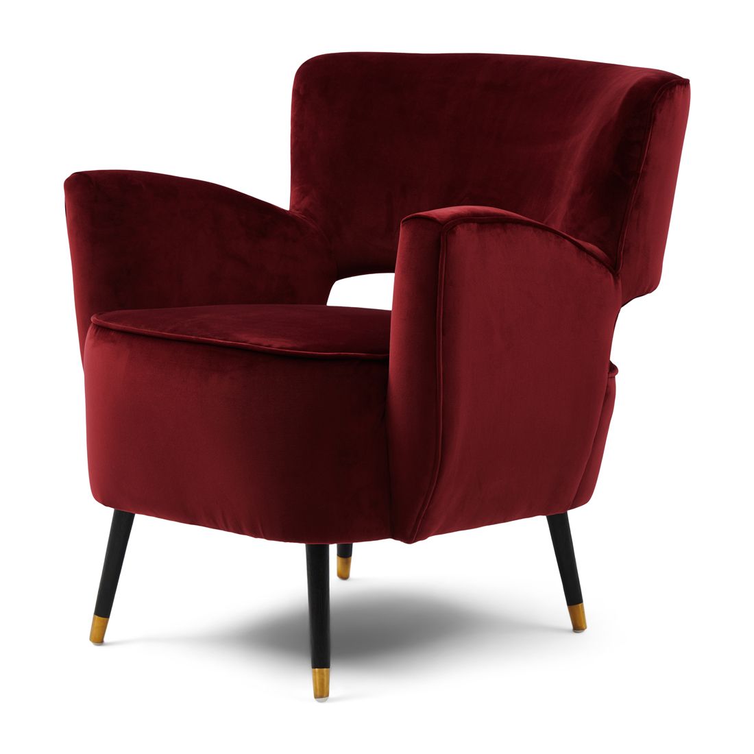 Der Laurel Armchair ist eine Kombination aus trendigem Cocktailsessel und bequemem Sessel, dessen Rücken zu schweben scheint. Der Sessel ist mit dem Samt bezogen, einem Stoff mit charakteristischem Look, der sich je nach Lichteinfall verändert. Die Beine bestehen aus schwarzem Kautschukholz, mit einem edlen, zartgoldenen Fuß. Dieser Sessel ist in verschiedenen Farben erhältlich.