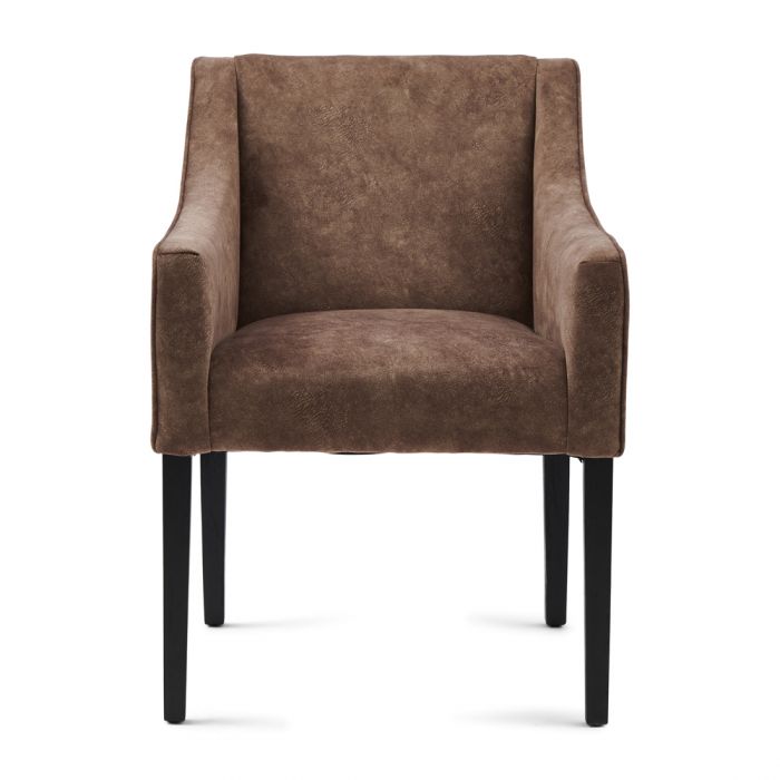 Mit dem markanten silbernen Griff an der Rückenlehne ist dies der neue Savile Row Dining Armchair. Das Design ist vertraut und bequem, aber die Beine aus schwarzem Kautschukholz verleihen dem Stuhl ein robustes Aussehen. Der Bezug besteht aus „Berkshire“, einem bearbeiteten Samtstoff, der dem Stuhl einen auffallenden Look verleiht. Dieser Stuhl ist in verschiedenen Ausführungen, Materialien und Farben erhältlich.